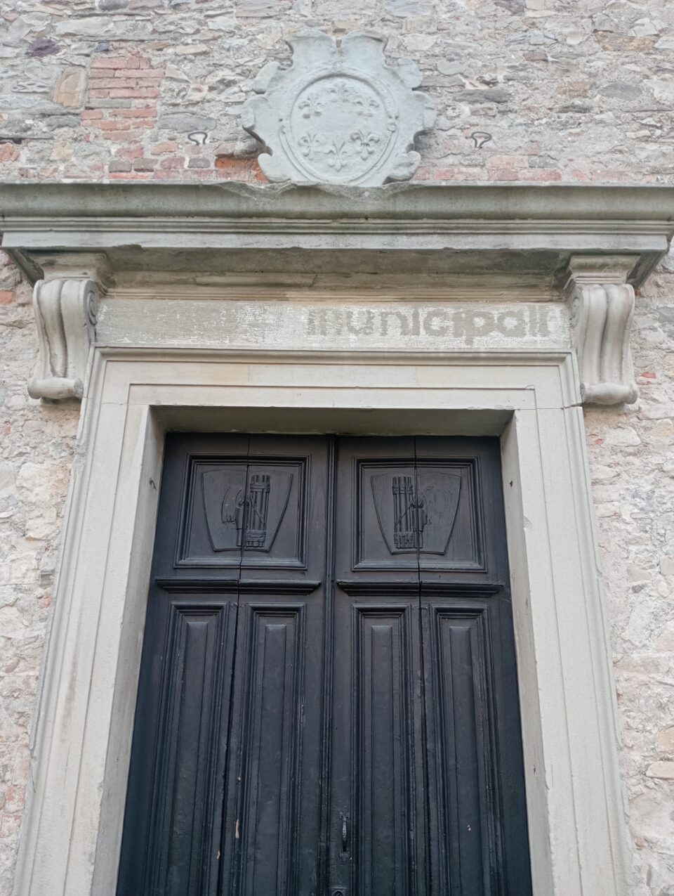 Il Castello di Bardi, detto anche Castello Landi, sorge in provincia di Parma. Adibito a prigione militare fino al 1868, viene in seguito ceduto all’amministrazione comunale e diviene sede di uffici pubblici fino agli anni ’80. Nella corte interna del castello l’ingresso centrale dell’edificio non lascia spazio a equivoci. Due fasci littori speculari sopravvivono sulla grande porta in legno, sebbene la scure di uno dei due sia stata asportata; così come è stata asportata la scritta che precede la dicitura “municipali”, che probabilmente conteneva un riferimento esplicito al Fascismo.